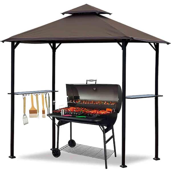 Outdoor Patio 8 ft. x 5 ft. Brown Straight Top Grill Gazebo
