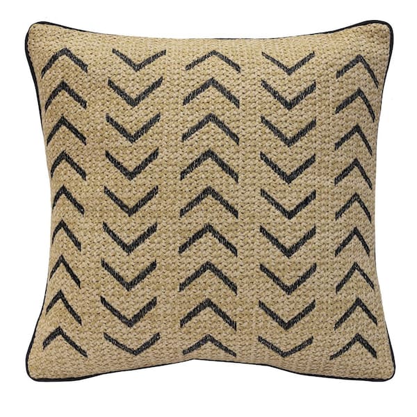 Outdoor Black Embroidered Raffia Throw Pillow 18 x 18-Includes 1-Throw Pillow