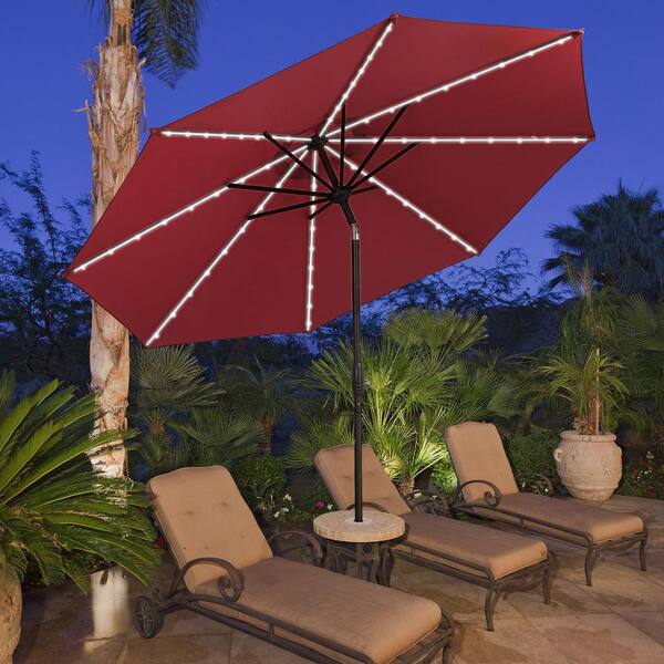 10 ft. Solar Patio Umbrellas in Red with LED lights for Market Outdoor Pool, Steel Tilt Crank