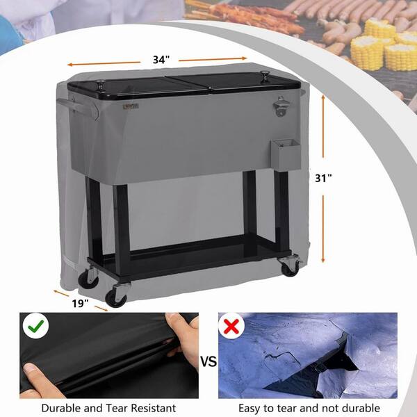Outdoor Patio Ice Coolers Cart Cover, Black PU, Windproof, Waterproof, and Sunblock, 34 in. L x 19 in. W x 31 in. H