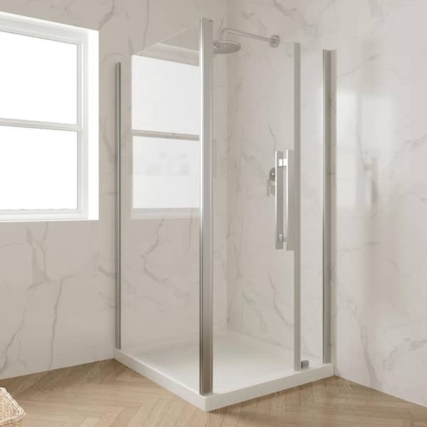 40-in L x 36-in W Alcove or Corner Shower Pan Base Rectangle with Hidden Side Drain, White Acrylic, Reversible Design
