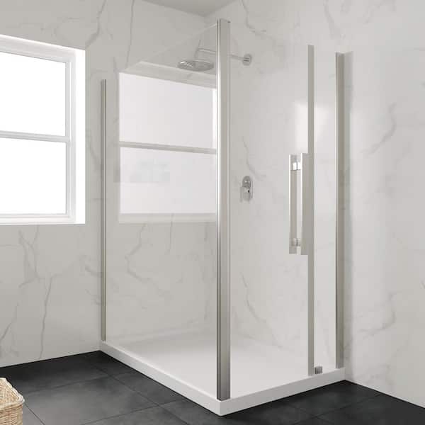 54-in L x 36-in W Alcove or Corner Shower Pan Base Rectangle with Hidden Side Drain, White Acrylic, Reversible Design