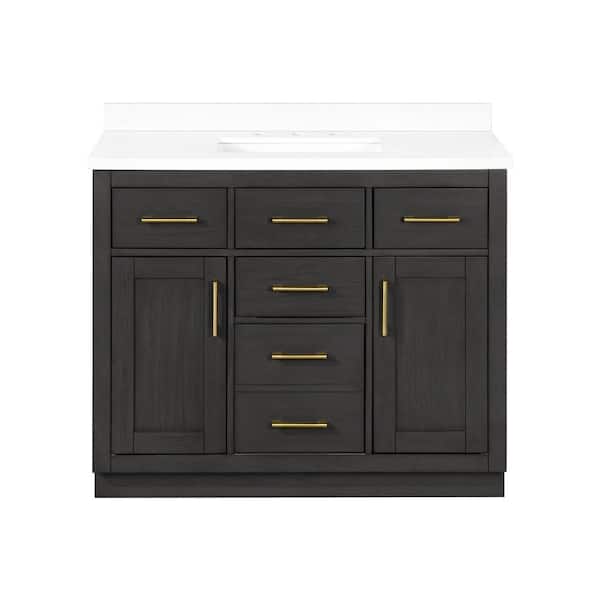• 42 in. W x 22 in. D x 34 in. H wood vanity and premium quartz top