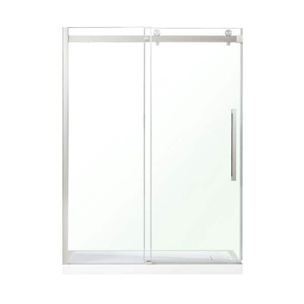 Bel Soft Close 60 in. W Alcove Frameless Sliding Shower Door in Satin Nickel