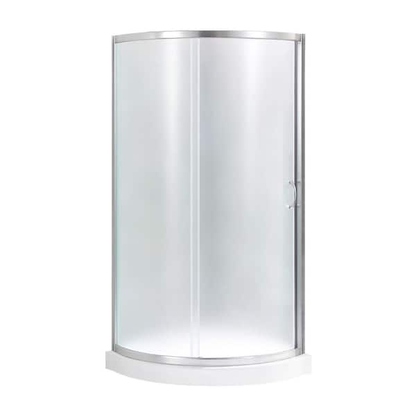 Breeze 32 in. L x 32 in. W x 77 in. H Corner Shower Kit with Frosted Framed Sliding Door in Satin Nickel and Shower Pan