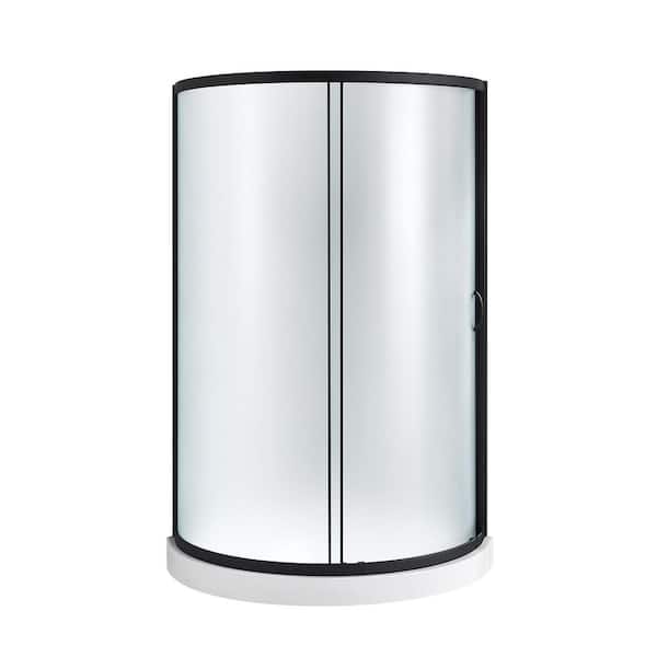 Breeze 36 in. L x 36 in. W x 77 in. H Corner Shower Kit with Frosted Framed Sliding Door in Black and Shower Pan