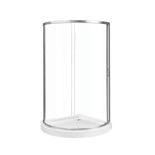 Breeze 38 in. L x 38 in. W x 76.97 in. H Corner Shower Kit with Clear Framed Sliding Door in Satin Nickel and Shower Pan