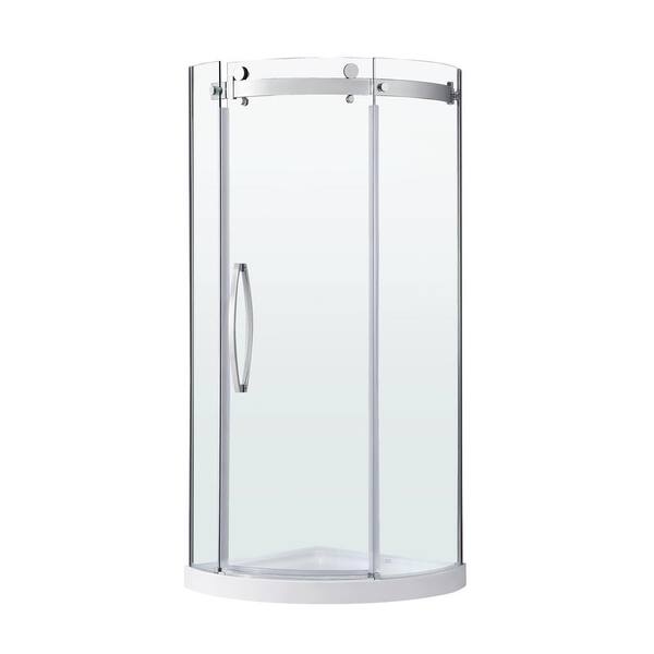 Breeze Lux 36 in. L x 36 in. W x 75.51 in. H Corner Shower Kit with Sliding Frameless Door in Chrome and Shower Pan
