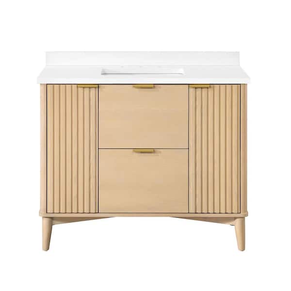 Gabi 42 in. Single Sink Rustic Ash Bath Vanity with White Engineered Stone Top (Assembled)
