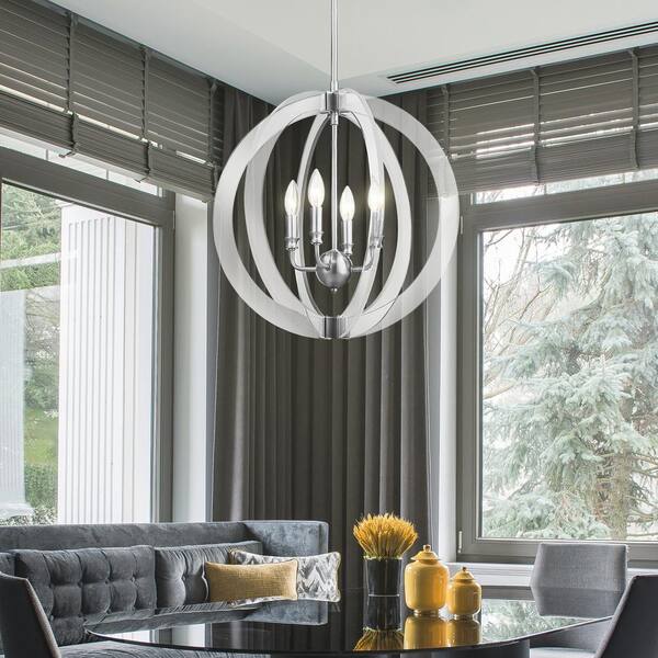 Isabelle 4-Light Chrome Pendant Light with Clear Shade and Bulbs Included