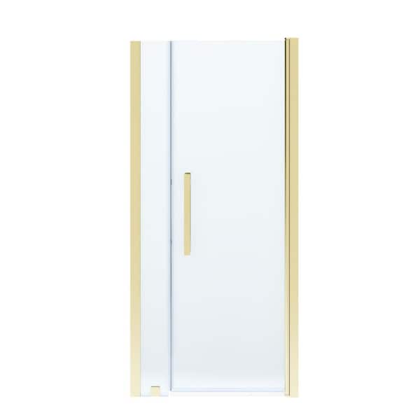 Pasadena 33 3/4 in. to 35 3/4 in. W x 72 in. H Pivot Alcove Frameless Shower Door in Brushed Gold