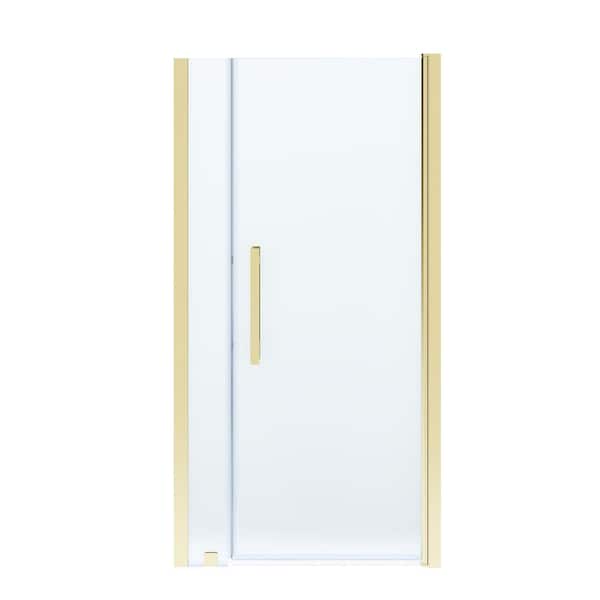 Pasadena 37 3/8 in. to 39 3/8 in. W x 72 in. H Pivot Alcove Frameless Shower Door in Brushed Gold