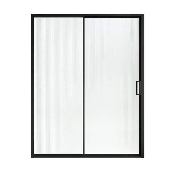 Stanford 58 3/16 in. - 60 in. W x 74 in. H Alcove Sliding Framed Shower Door with Fluted Glass in Black Finish