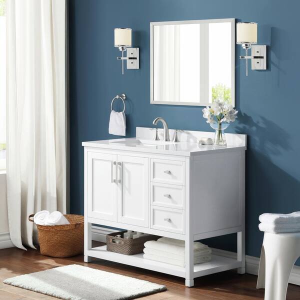 Stanley 42 in. W x 22 in. D x 34 in. H Bath Vanity in Midnight Blue with White Engineered Stone Top and BN Mirror