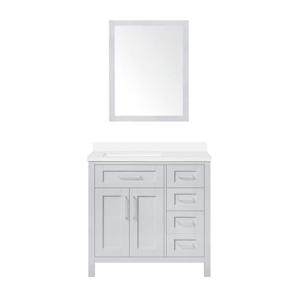 Tahoe III 36 in. W x 21 in. D x 35 in. H Single Sink Bath Vanity in Dove Gray with White Quartz Top and Dove Gray Mirror