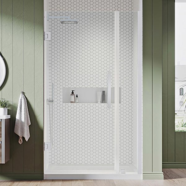 Tampa-Pro 36 in. L x 36 in. W x 75 in. H Alcove Shower Kit w/Pivot Frameless Shower Door in Chrome and Shower Pan