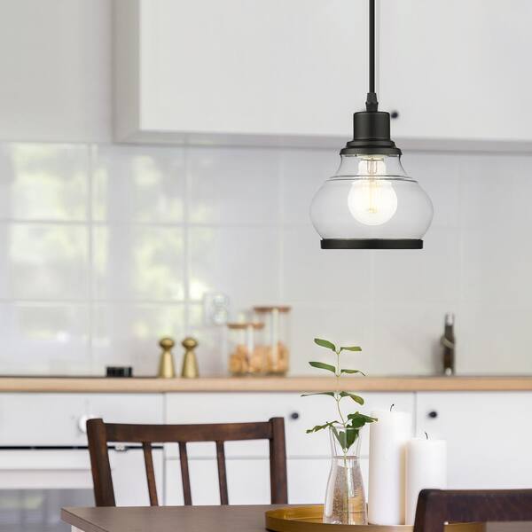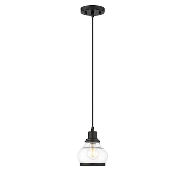 Theodore 1-Light Black Mini Pendant Light with Clear Glass Shade
