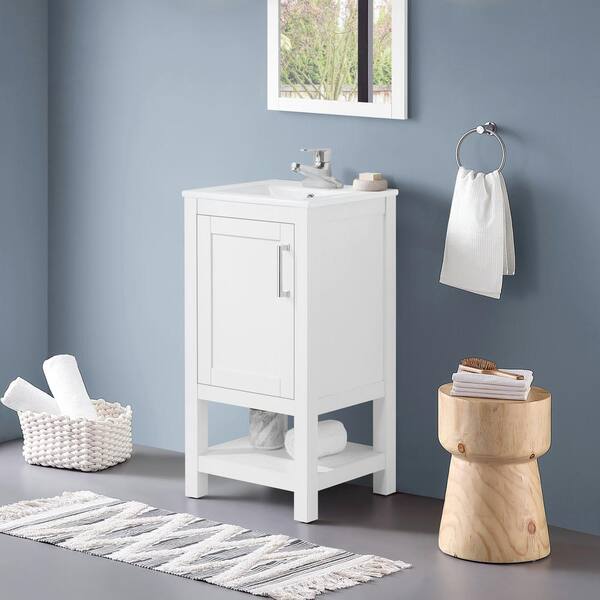 Vegas 18 in. W x 16 in. D x 34.5 in. H Bath Vanity in White with Ceramic Vanity Top in White with White Basin