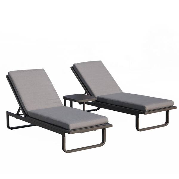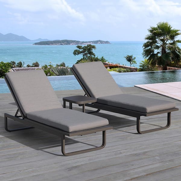 Vienna 2-Piece Aluminum Outdoor Chaise Lounge with Gray Cushions