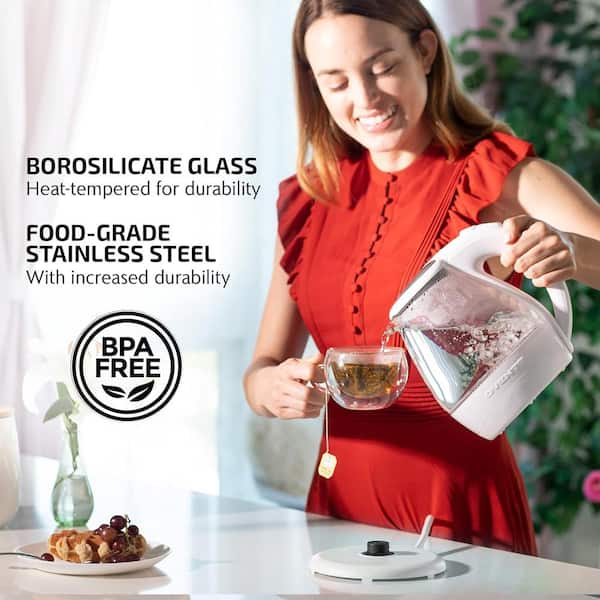 1.5 Lighted Electric Glass Kettle with Blue LED Light and Stainless Steel Lid, 6 Cup, White KG845W