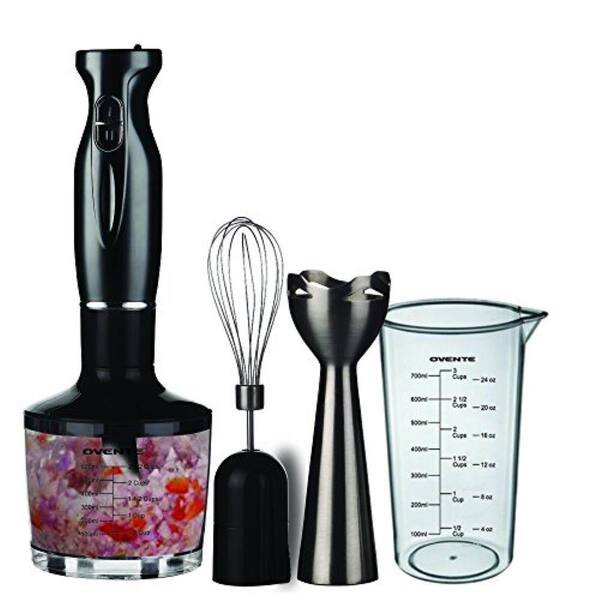 • Immersion blender makes smoothies, shakes, sauces, and purees