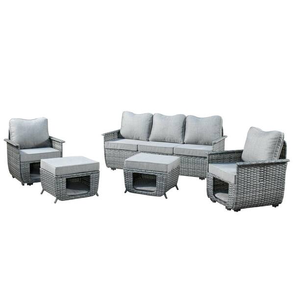 Fortune Dark Gray 5-Piece Wicker Outdoor Patio Conversation Seating Set with Dark Gray Cushions