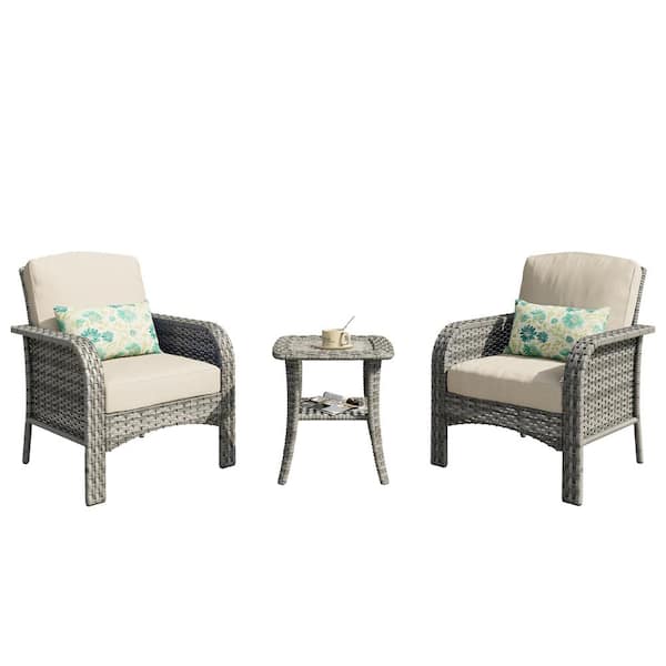 Missisi Gray 3-Piece Wicker Patio Conversation Seating Set with Beige Cushions