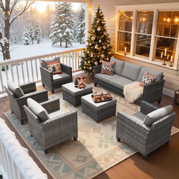 New Vultros Gray 7-Piece Wicker Outdoor Patio Conversation Seating Set with Dark Gray Cushions