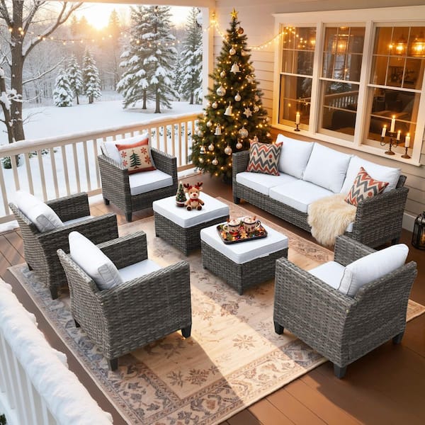 New Vultros Gray 7-Piece Wicker Outdoor Patio Conversation Seating Set with Gray Cushions