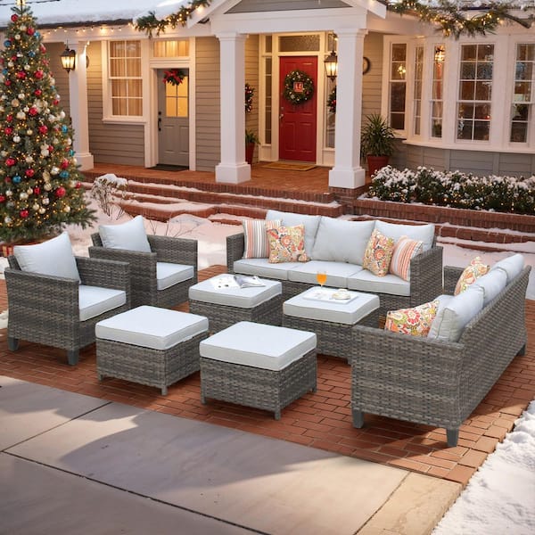 New Vultros Gray 8-Piece Wicker Outdoor Patio Conversation Seating Set with Gray Cushions