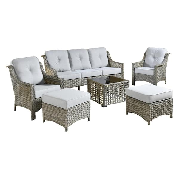 Palffy Gray 6-Piece Wicker Patio Conversation Seating Set with Gray Cushions and Coffee Table