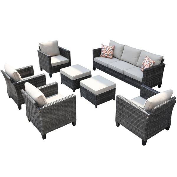 Positano Gray 7-Piece Wicker Patio Conversation Set with with Beige Cushions