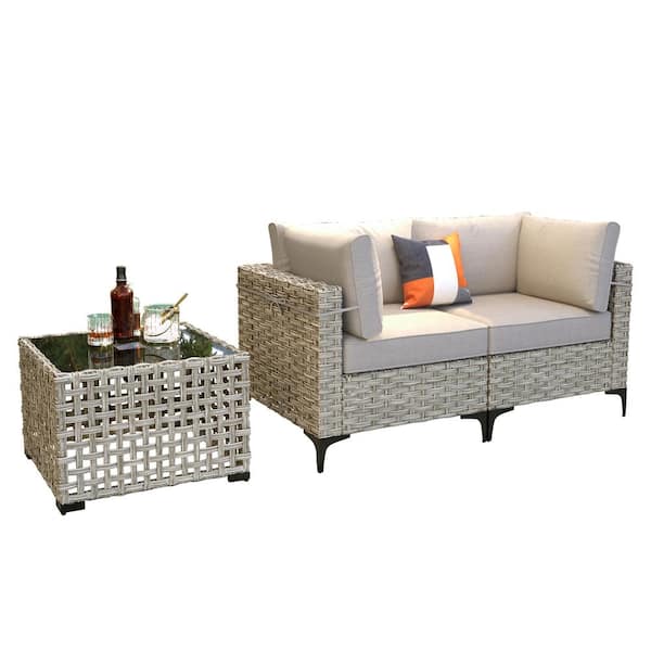 Supery Gray 3-Piece Wicker Patio Conversation Set with Beige Cushions and Coffee Table