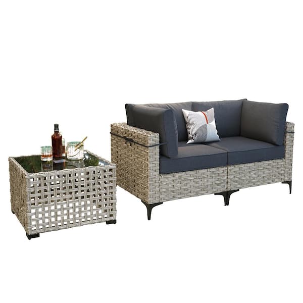 Supery Gray 3-Piece Wicker Patio Conversation Set with Black Cushions and Coffee Table