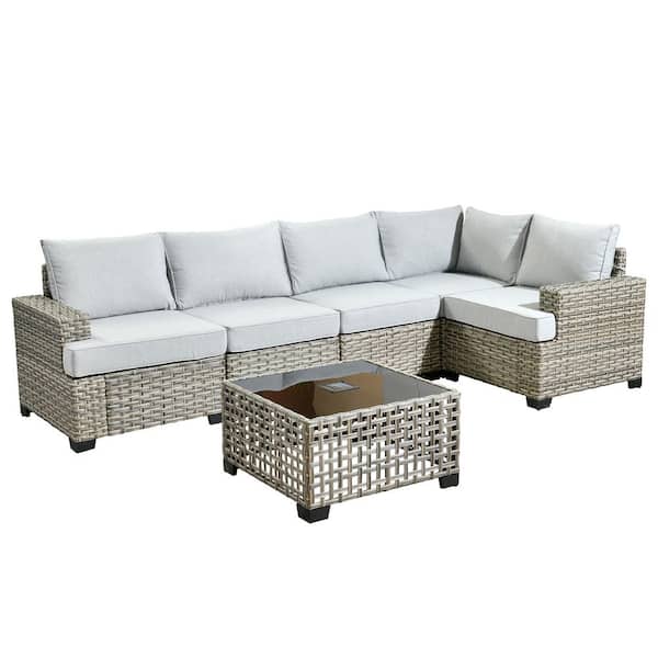 Tiberty Gray 6-Piece Wicker Patio Conversation Seating Set with Gray Cushions