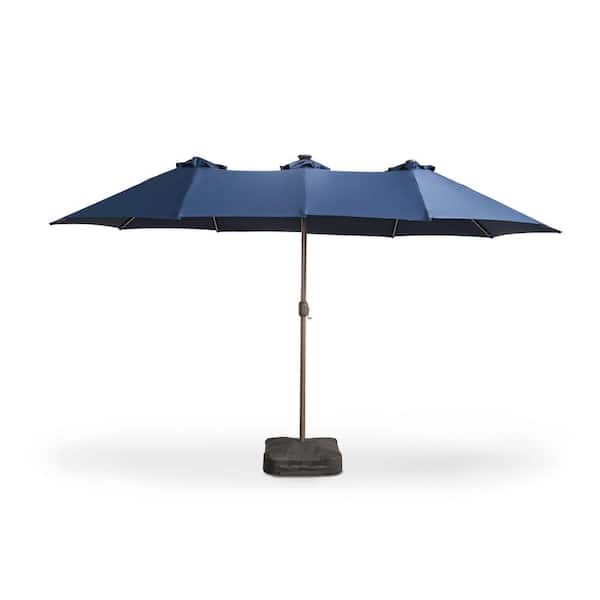 Wigler Double Top 14.5 ft. Steel Cantilever Outdoor Patio Umbrella with Base and LED Smart Strips in Dark Blue