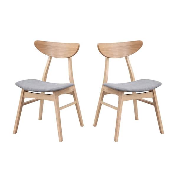 Oak Wooden Outdoor Dining Chairs with Grey Cushions, Kitchen Side Chairs for Dining Room, Living Room, (Set of 2)