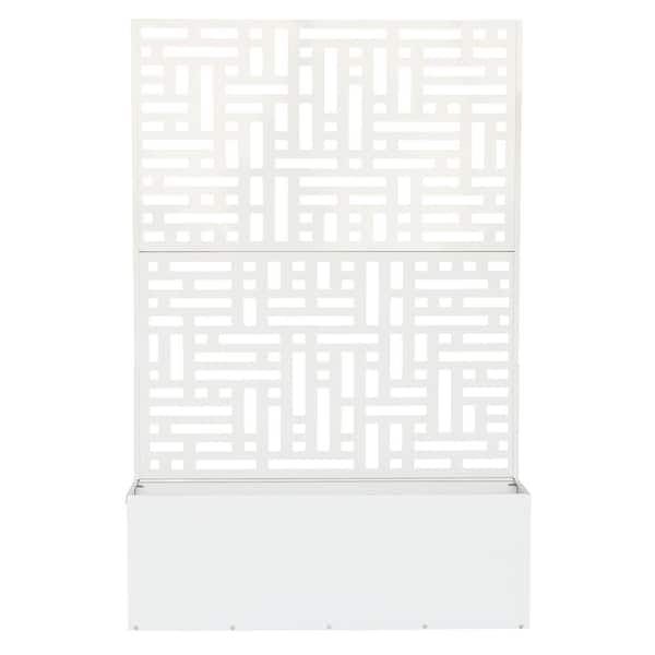 6 ft. x 4 ft. White Freestanding Metal Privacy Screen Room Divider with Flower Box