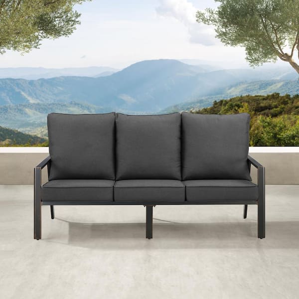 Black 1-Piece Aluminum Outdoor Deep Seating Deep Seating Couch with Cushion with Black Cushions