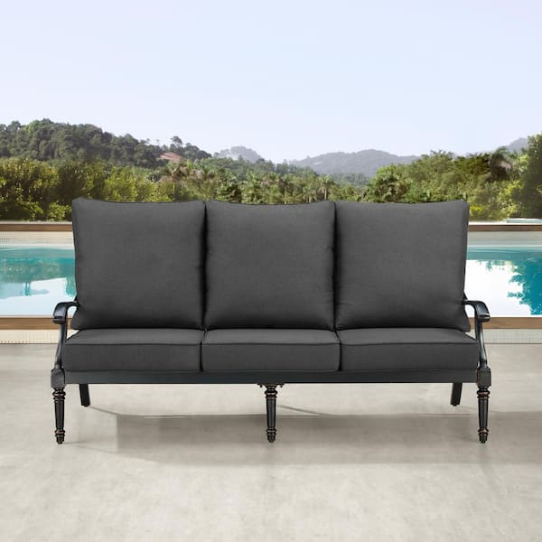 Black 1-Piece Aluminum Outdoor Deep Seating Deep Seating Couch with Cushion with Black Cushions