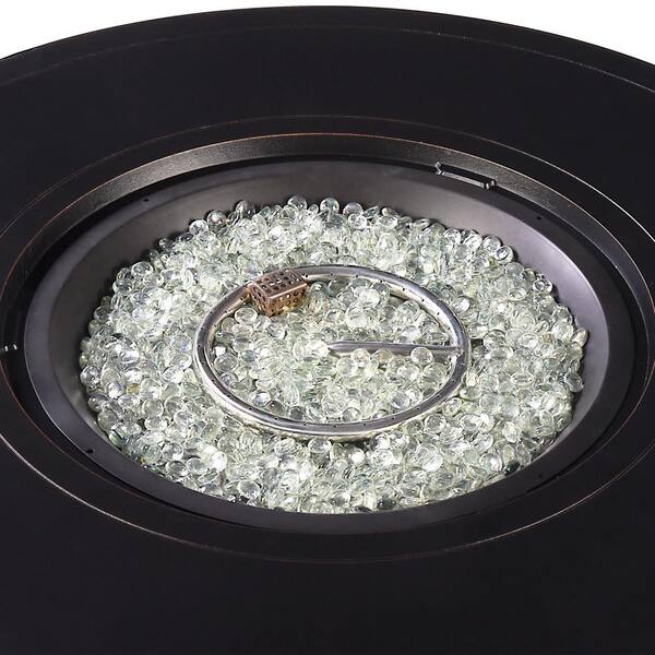 Black 5-Piece Aluminum Patio Fire Table Set with Black Cushions