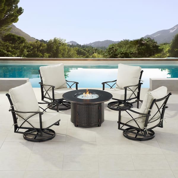 Black Aluminum Fire Table Set with 4-Club Chairs