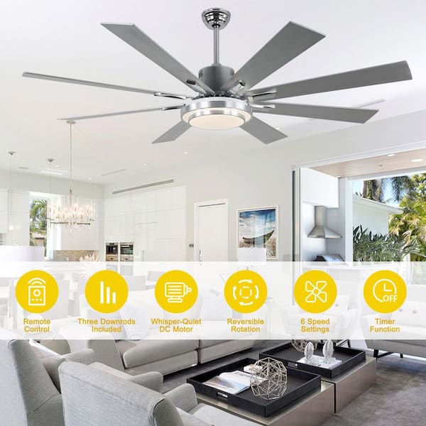 Areo72 in. Indoor Modern Chrome Large Ceiling Fan with LED Light and Remote,Reversible 6-Speed Fan Light for Living Room