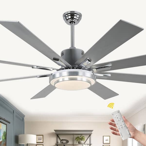 Areo72 in. Indoor Modern Chrome Large Ceiling Fan with LED Light and Remote,Reversible 6-Speed Fan Light for Living Room