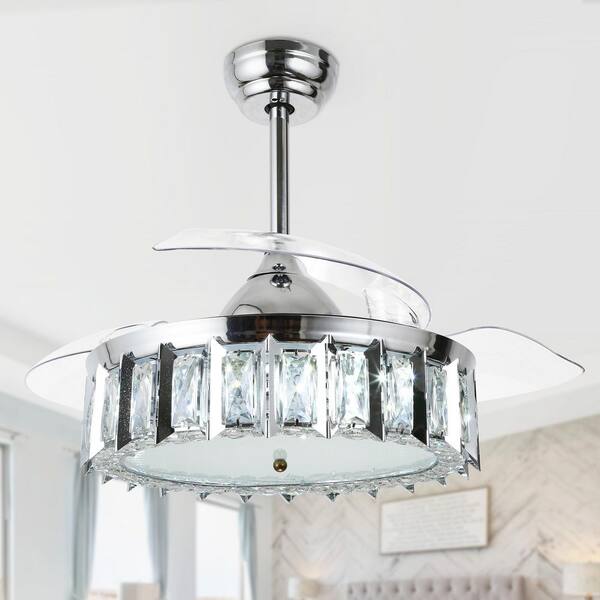 Cerello 42in. LED Indoor Chrome Glam Crystal Chandelier With Retractable Remote Control Ceiling Fan With Light