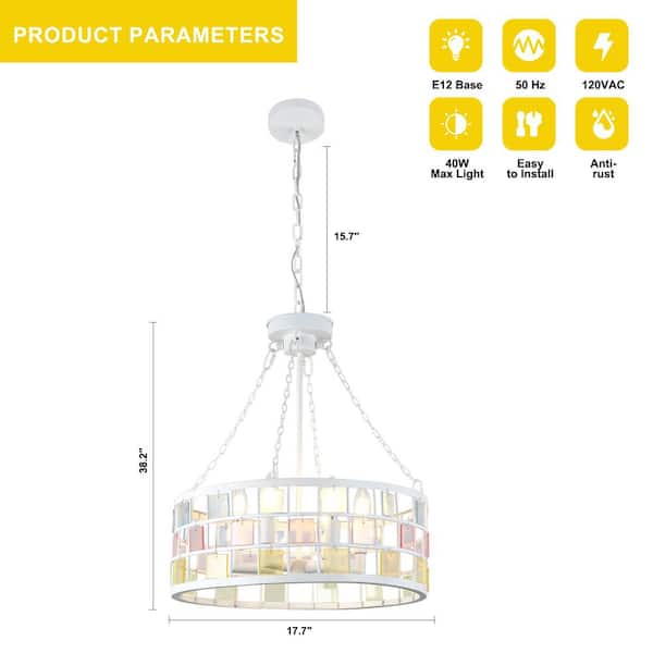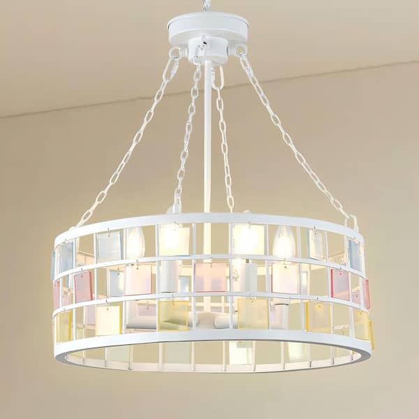 Gleam 6-Light White DIY Tiffany-Inspired Chandelier, Adjustable Height Pendant Light for Dining, Living Room