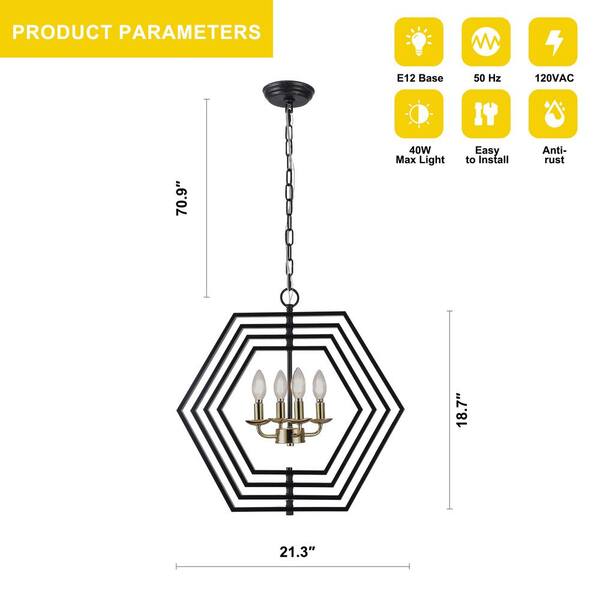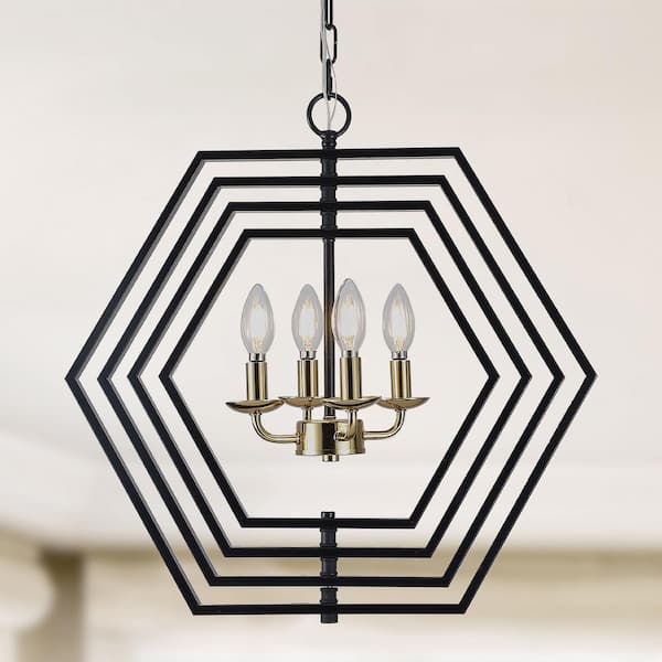 Hexa 4-Light Black 360° DIY Shape Modern Industrial Geometric Pendant Chandelier for Dining Room, Living Room