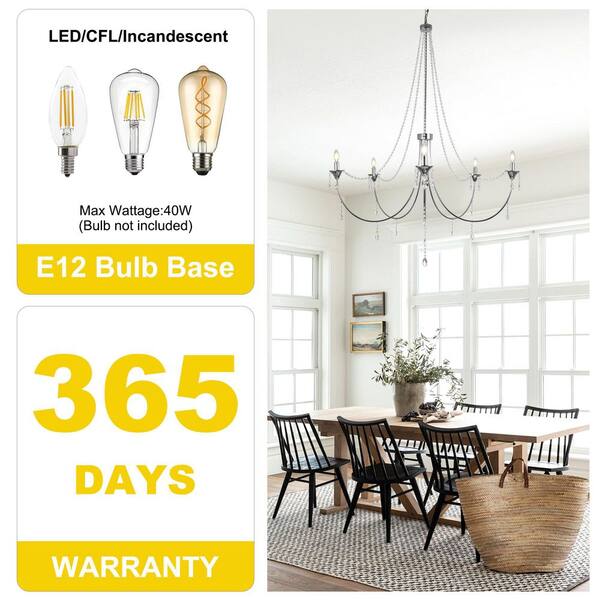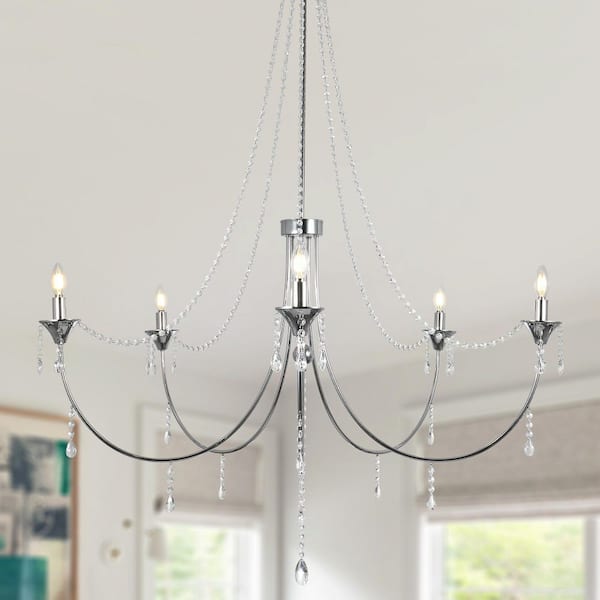 Lorenzo 47 in. 5Light Elegant French Style Adjustable Height Glam Crystal Chrome Chandelier for Dining and Living Spaces