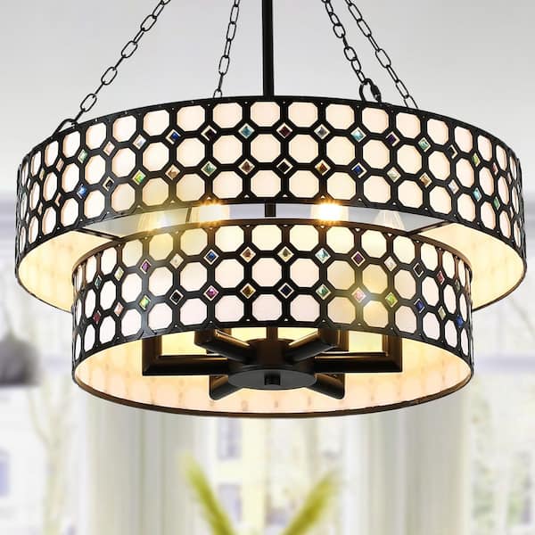 Luster 6-Light Matte Black Polka Dot Chandelier-Artistic Elegance Inspired by Iconic Design for Dining, Living Room
