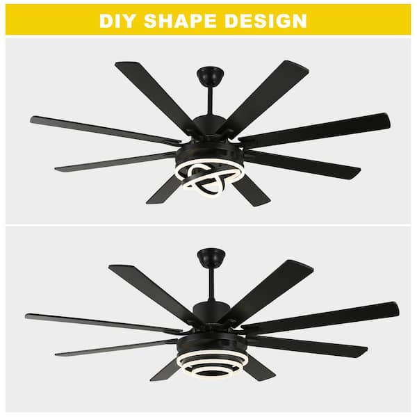 Maya 72 in. Indoor Matte Black DIY Shape Dimmable Modern Ceiling Fan with LED Light Reversible 6-Speed Ceiling w/ Remote
